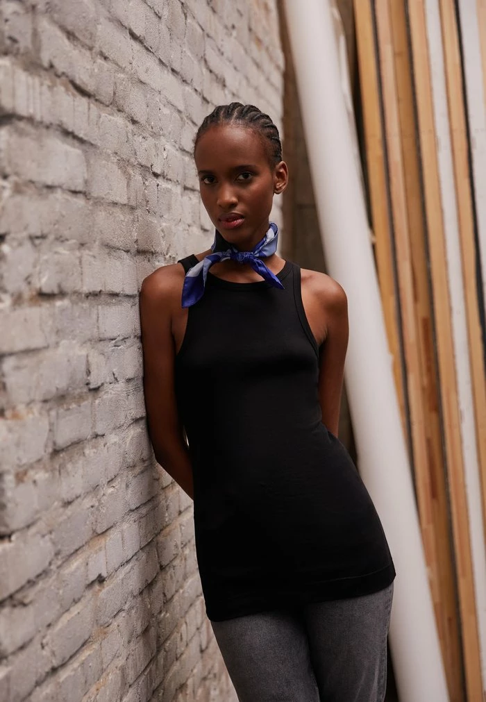 - Our model’s height: Our model is 5′ 10″ tall and is wearing size S