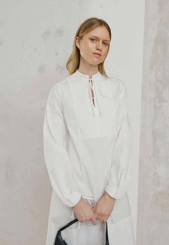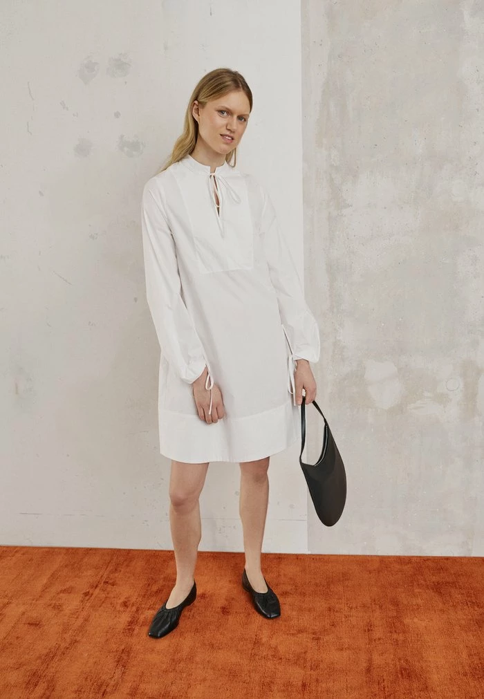 - Our model’s height: Our model is 5′ 10″ tall and is wearing size 8