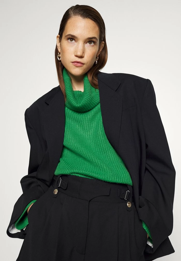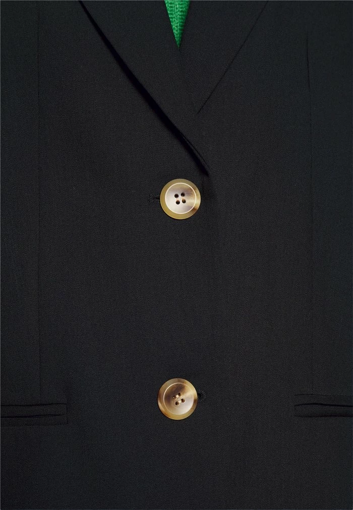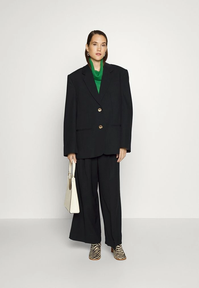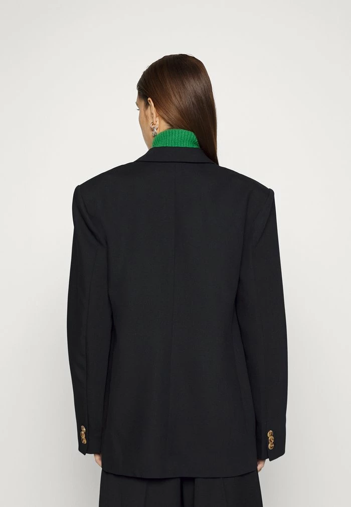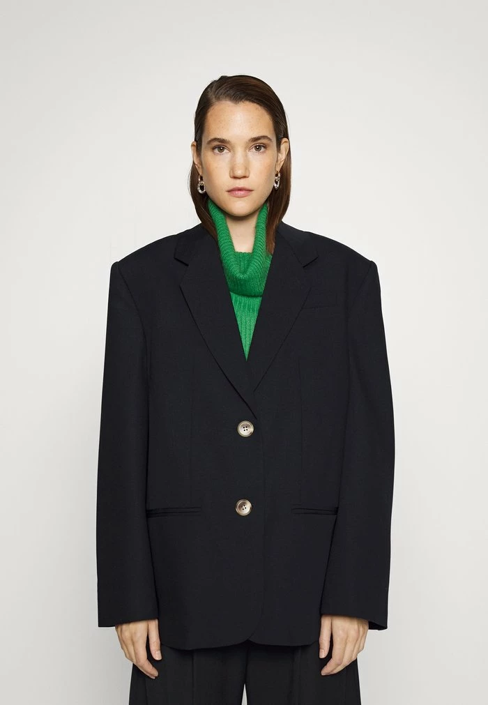 - Details: Inseam pockets, shoulder pads